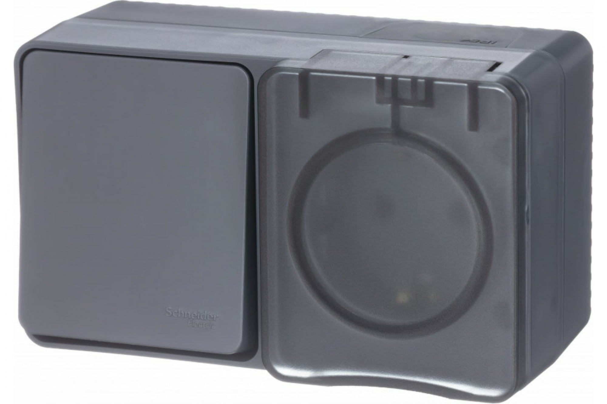 В нашем магазине «Главэлектрика» в Тюмени, вы можете приобрести товар: «Блок: розетка 2Р+Е шторки 16А + 1-к выкл.10А открытой установки IP54 SE AtlasDesign Profi54,антрацит» с доставкой по г. Тюмень.