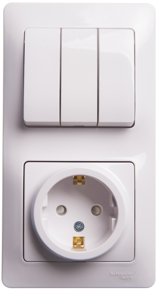 Блок комбинированный Systeme Electric (ранее Schneider Electric) серии Glossa (в сборе, цвет белый) предназначен для сетей до 250 В, состоит из розетки с заземлением и шторками на 16 А и 3-клавишного выключателя на 10 А. Блок удобен в применении и отлично подходит для коридора. Заземляющий контакт обеспечивает дополнительную защиту от удара электрическим током. При наличии заземления электрический потенциал уходит в землю, защищая человека. Трёхклавишный выключатель позволяет управлять тремя источниками света из одной точки. Выполнен из материала PС+ASA, стойкого к УФ-излучению и появлению царапин.