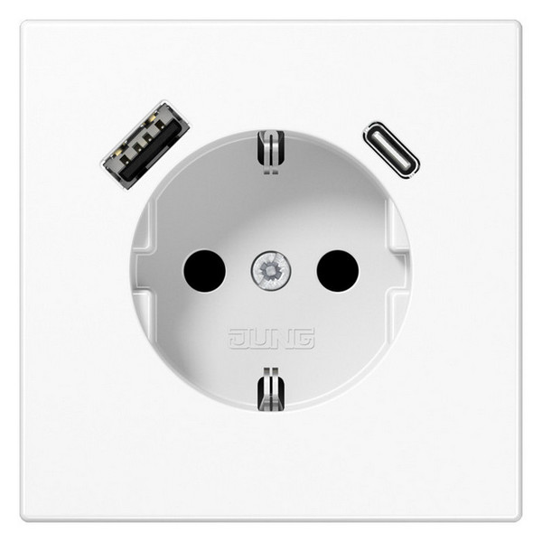 В нашем магазине «Главэлектрика» в Тюмени, вы можете приобрести товар: «Розетка с/з и с USB-зарядным устройством тип A+тип С Jung LS Белый» с доставкой по г. Тюмень.
