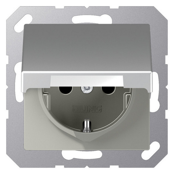В нашем магазине «Главэлектрика» в Тюмени, вы можете приобрести товар: «Розетка с/з автозажим с откидной крышкой Jung A Алюминий» с доставкой по г. Тюмень.