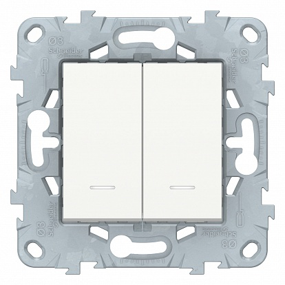 UNICA NEW ВЫКЛЮЧАТЕЛЬ 2-клавишный, 2 модуля, с подсветкой, 2 х сх. 1а, БЕЛЫЙ. область применения: управление - тип устройства или его аксессуаров: выключатель - комплектация изделия: механизм с монт. рамкой из сплава zamak - поставляемое оборудование: фиксирующая рама. Преимущества: Для пользователей. Пользователи по достоинству оценят преимущества продукции, обладающей утонченным дизайном, инновационностью и обеспечивают удобство и безопасность. – От базовых изделий до продуктов премиум класса, максимально дополняющих интерьер. – Элегантные материалы для роскошных интерьеров. – Умные устройства, например, датчики движения, автоматические диммеры или выключатели с управлением по времени, обеспечивают большую безопасность и удобство. – Умное решение для дома, включающее технологию Wiser, обеспечивающее максимальную подключенность, удобство и безопасность (например, датчик утечки воды).. Для специалистов по электрике. Unica New – это серия, обладающая набором умных функций и интуитивно понятной конструкцией , к