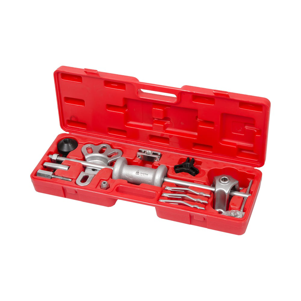 Универсальный обратный молоток с принадлежностями МАСТАК 100-40017C - это профессиональный инструмент, который может применяться как для снятия прикипевших элементов (например, подшипников), так и для выправления вмятин на кузове, крыле и других конструктивных деталей автомобиля. Большой комплект поставки (17 предметов) позволяет применять его при ремонте и обслуживании автомобилей большинства мировых марок.