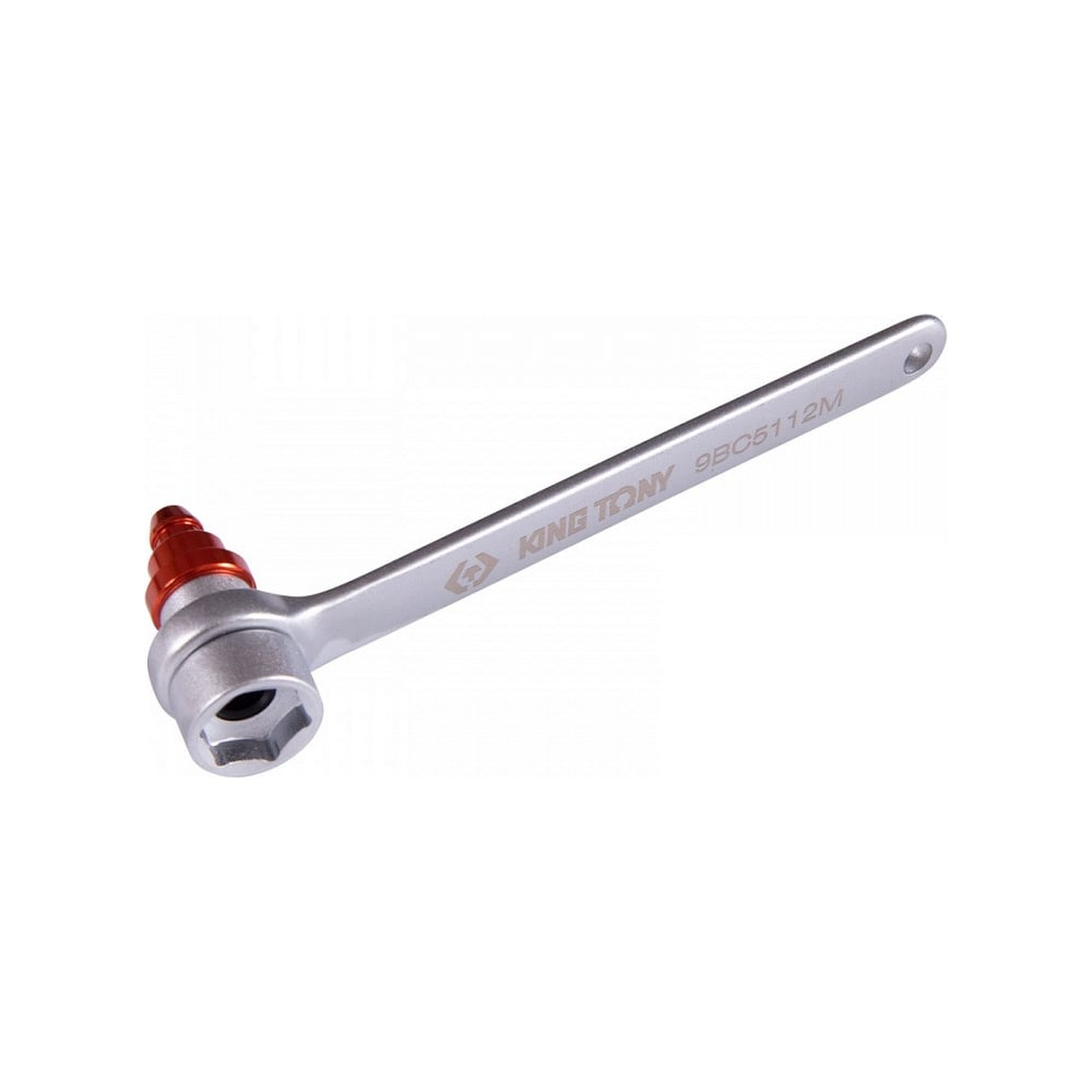 Ключ для прокачки тормозов KING TONY, 12 мм 9BC5112M используется для прокачки тормозных суппортов любых транспортных средств, позволяет работать с крепежом с повреждёнными гранями. Инструмент применяется на станциях технического обслуживания автомобилей (СТО), в автосервисах, автомастерских, в промышленности и в быту. Ключ подходит для прокачки тормозной системы и системы гидравлического сцепления без снятия колес. Внутренний клапан предотвращает обратный поток воздуха в тормозную систему. Ключ выполнен из качественной хромированной стали и алюминия, что обеспечивает прочность и долгий срок службы. Анодированное покрытие защищает инструмент от коррозии.