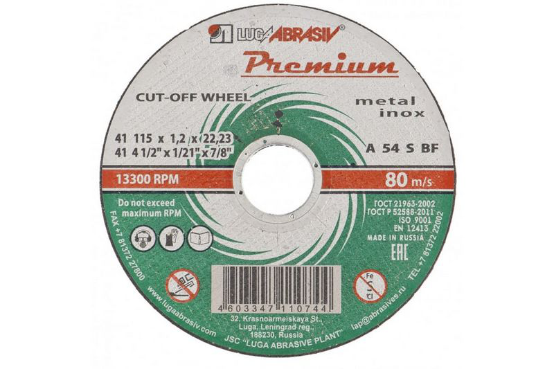 В нашем магазине «Главэлектрика» в Тюмени, вы можете приобрести товар: «Круг отрезной по металлу+нерж. 115 х 1,0 х 22 мм, ПРЕМИУМ (Луга)// Россия» с доставкой по г. Тюмень.