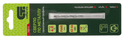 В нашем магазине «Главэлектрика» в Тюмени, вы можете приобрести товар: «Сверло по металлу 4 мм, Р6М5 // СИБРТЕХ 72213» с доставкой по г. Тюмень.