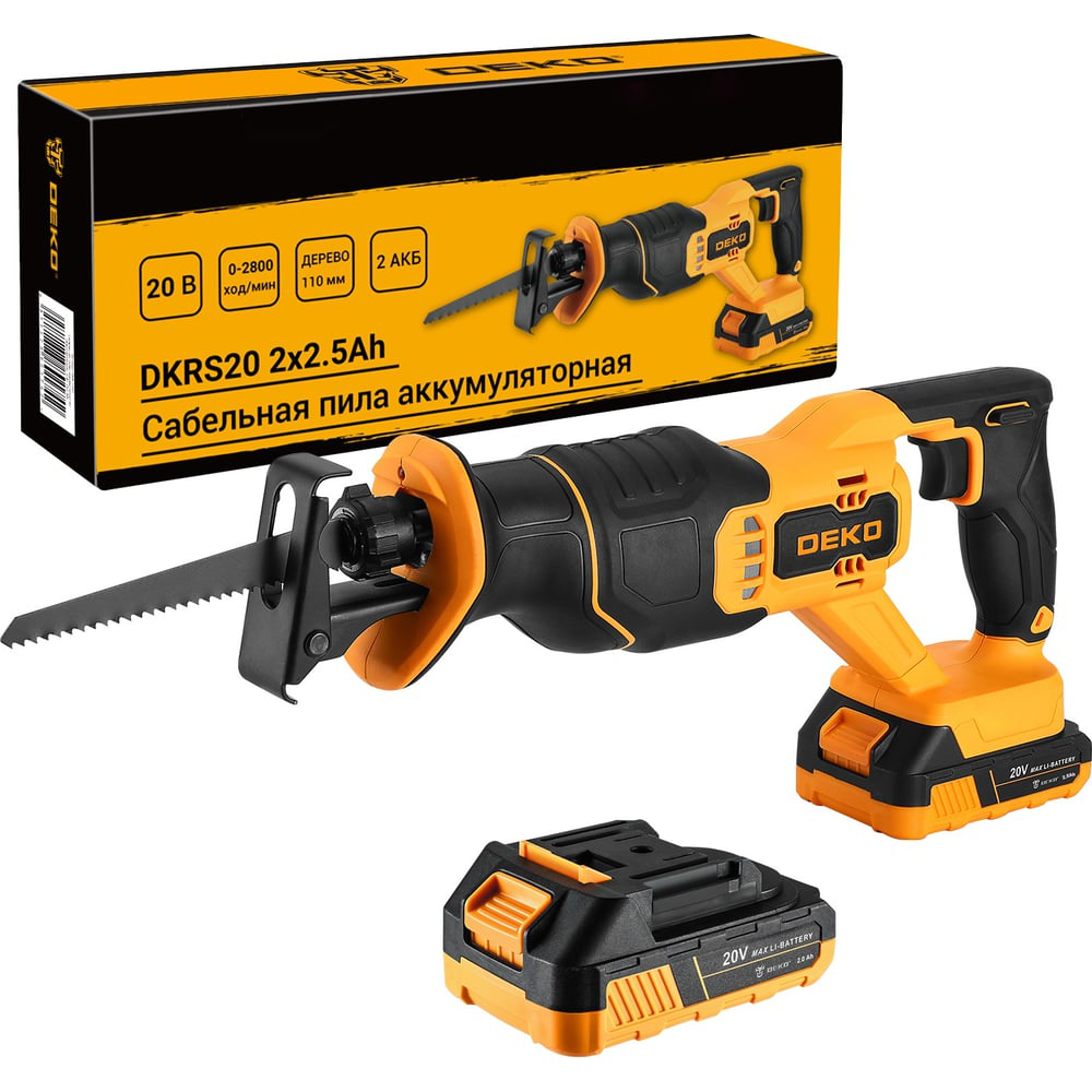 В нашем магазине «Главэлектрика» в Тюмени, вы можете приобрести товар: «Сабельная пила аккумуляторная DEKO DKHS20, 20В, 2x2.5Ач 085-1129» с доставкой по г. Тюмень.