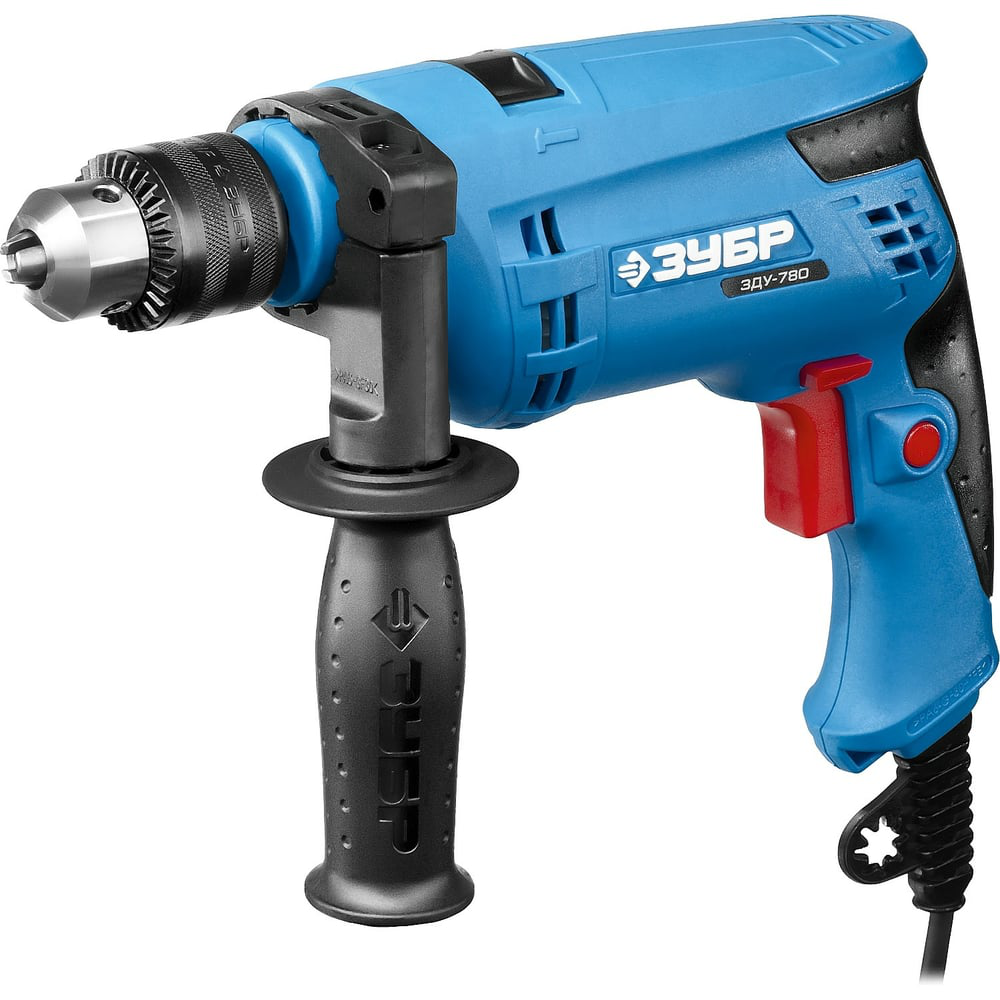 Ударная дрель Зубр ЗДУ-780 ЭРКМ2 - незаменимый бытовой инструмент для сверления отверстий в дереве, стали, кирпиче. Благодаря режиму сверления с ударом дрель легко справляется с бетонными стенами. Плавное начало сверления предотвращает увод сверла и обеспечивает аккуратную работу. Частота оборотов регулируется от 0 до 3000 об/мин плавным нажатием на пусковой курок. Частота ударов при сверлении с ударом достигает 48000 уд/мин. Дополнительная рукоятка служит не только для надежного удержания, но и используется как пенал для оснастки. Также дрель может применяться как шуруповерт при установке соответствующих бит.
