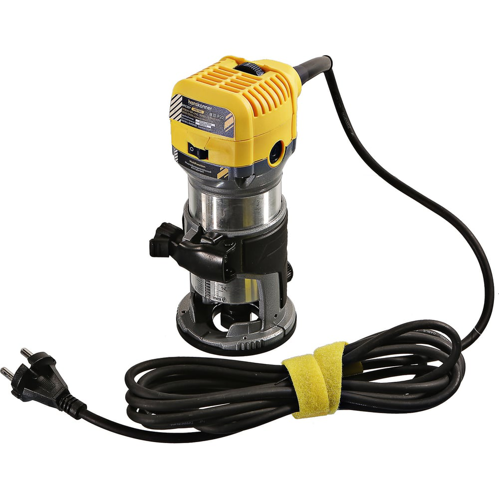 Фрезер Hanskonner HRE1185 – сочетание комфорта и функциональности. Он позволяет идеально справиться с кромочными работами, снятием фасок, нарезкой канавок и пазов. Двигатель мощностью 850 Вт позволяет с легкостью обрабатывать любые материалы: дерево, ДСП, фанеру, пластик. Регулировка скорости от 10000 до 30000 об/мин дает обработать материал любой жесткости, не навредив ему. Максимальная глубина погружения фрезера на 37 мм способна решить задачу с толстыми деревянными заготовками. Удобный фиксатор шпинделя поможет быстро и без лишних усилий изменять фрезы и цанги. Три сменные базы в комплекте: кромочная, погружная и наклонная - универсальность использования инструмента. Гибкий резиновый кабель длиной 4 м даёт возможность работать без удлинителей, а также не дубеет на морозе.