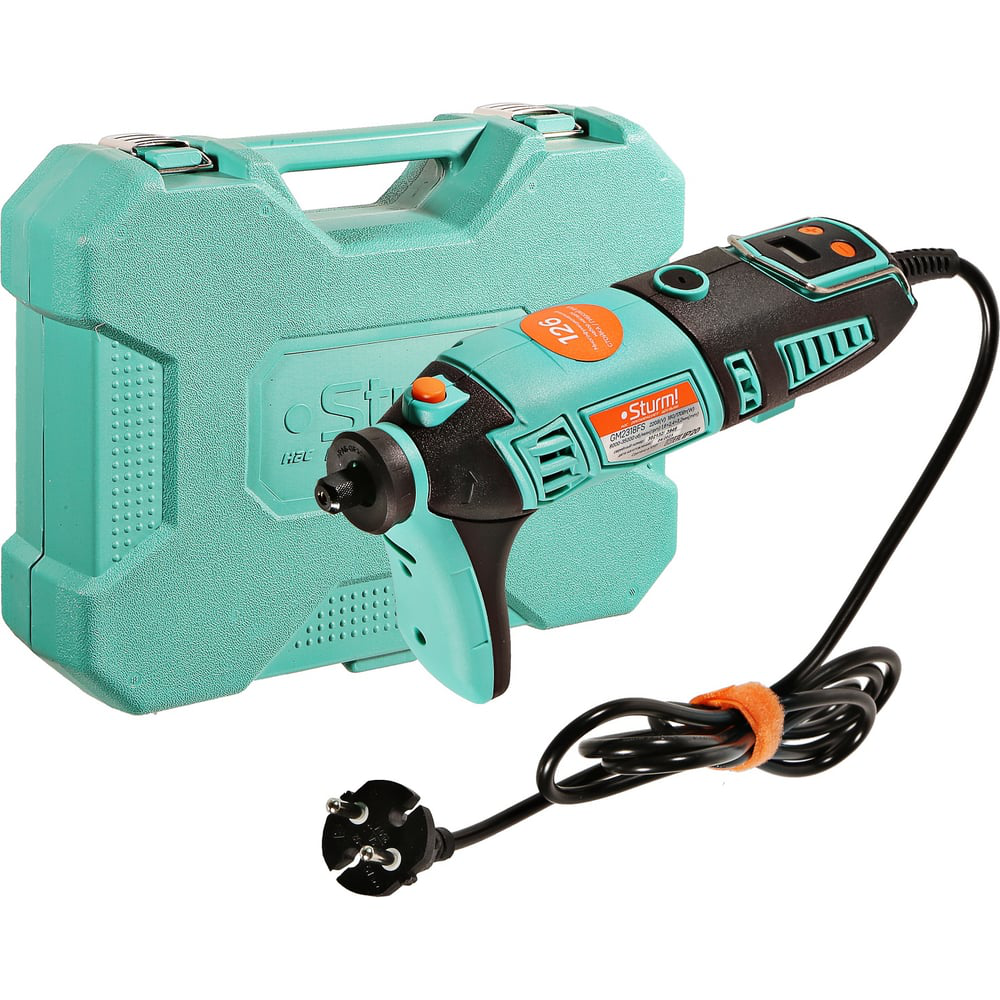 Гравер Sturm GM2318FS – высокоточная цифровая настройка оборотов с ЖК-дисплеем для подбора нужной скорости под работу с разными материалами. Отличная эргономика корпуса с противоскользящими накладками дополняется наличием вспомогательной рукоятки для удобного хвата и стойки для подвешивания гравера с помощью складной скобы при работе с использованием гибкого вала. Три цанги разных диаметров и широкий набор насадок в удобном пластиковом кейсе с внутренним органайзером для работы с разными материалами: металл, камень, стекло, пластмасса и т.д. Кнопка блокировки шпинделя для быстрой и удобной смены оснастки. Легкий доступ к щеткам электродвигателя для их самостоятельной замены.
