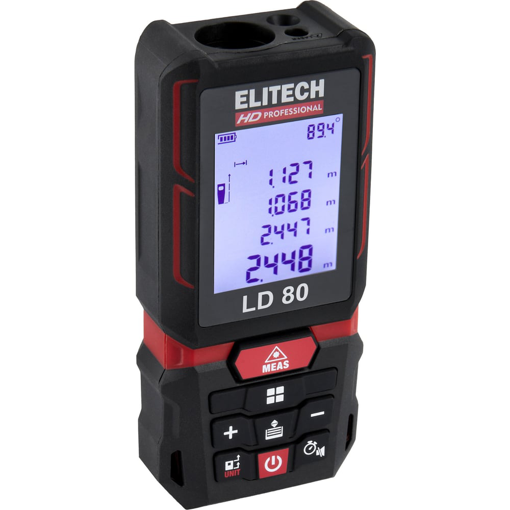 ELITECH «HD PROFESSIONAL» - серия инструментов для интенсивной работы, требующей высочайшей точности исполнения. Инструменты серии « HD PROFESSIONAL» сохраняют функциональность в экстремальных условиях окружающей среды. Они имеют максимальные степени защиты от перепадов температуры, влаги, пыли, перегрузок. Отличаются высокой ремонтопригодностью и высоким ресурсом. Созданы для профессионалов и для экстремальных условий.Дальномер ELITECH HD LD 80 предназначен для быстрого измерения расстояния с высокой точностью. Имеет дополнительные функции для измерения площади, объема, угла наклона и высоты с помощью режимов косвенного измерения.1) Технология «SMT» - высокое качество и надежность сборки платы, монтаж всех электронных компонентов полностью автоматизирован, SMD детали, за счет малого веса и компактных размеров, обладают высокой виброустойчивостью2) Высокая точность3) Измерение высоты по 2-м точкам4) Откидная скоба5) Подсветка дисплея6) Измерение MIN и MAX расстояний