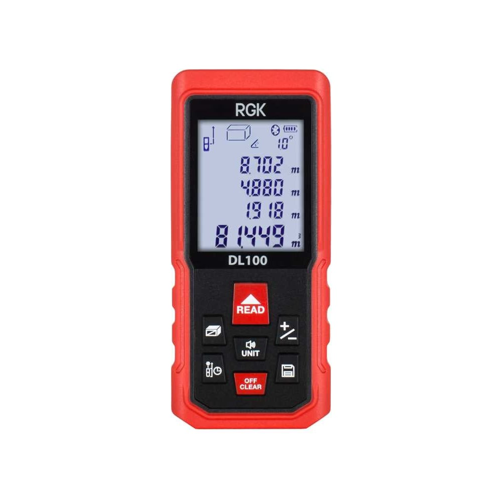 Лазерный дальномер RGK DL100 измеряет расстояния до 100 метров c точностью ±2 мм и оснащен угломером. Ключевая особенность прибора - опция «помощник маляра», которая поможет быстро вычислить сумму площадей стен помещения. Таким образом можно точно рассчитать необходимый объем краски, штукатурки и других материалов. Основные характеристики лазерного дальномера RGK DL100: Диапазон измерений до 100 метров позволяет использовать прибор даже в помещениях с большой площадью, например, в ангарах или торговых центрах. Точность измерения расстояний ± 2мм – достаточна для большинства видов ремонтных и строительных работ. Угломер с диапазоном работы ±90° позволит быстро и точно измерить расстояние под нужным углом, а также определить уклон поверхности. Встроенная память на 30 измерений избавляет от необходимости вести бумажные записи. Функция непрерывных измерений позволяет отложить необходимое расстояние до объекта. При перемещении прибора значения на экране будут меняться в режиме реального времени. Также на дисплее дальномера RGK DL100 будут отображаться минимальное и максимальное расстояние, что поможет для определения точной длины помещения по диагонали или кратчайшего расстояния.