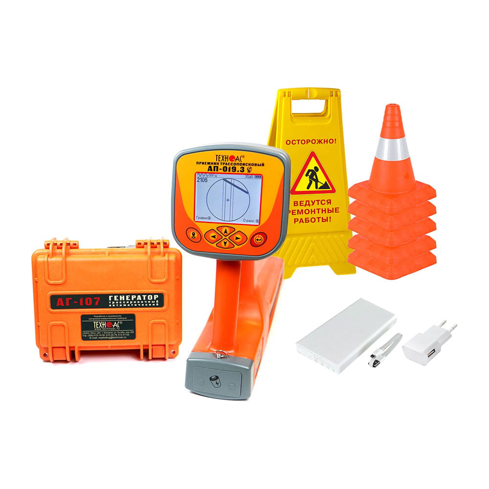 Трассопоисковый комплект предназначен для точного определения местоположения и глубины залегания подземных коммуникаций (силовые и сигнальные кабельные линии, армированные оптоволоконные линии, трубопроводы из электропроводных материалов), поиска неисправностей кабельных линий, а также позволяет в кратчайший срок и с большой надежностью проводить обследование местности перед производством земляных работ и предотвращать повреждение инженерных коммуникаций. В составе комплекта приемник в виде моноблока с большим ЖК дисплеем, на который выводится изображение трассы и в автоматическом режиме происходит расчет глубины залегания коммуникации до 10 м, а также величины тока в линии. Встроенный GPS\ГЛОНАСС модуль для определения и записи координат нахождения коммуникации. Назначение трассоискателя: Определение местоположения и глубины залегания скрытых подземных коммуникаций на глубине до 10 м; Трассировка коммуникаций с использованием генератора на расстояние до 5 км; Поиск электрических кабелей под напряжением; Поиск мест пересечения трубопровода и кабеля; Определение мест повреждения кабельных линий; Обследование участков местности перед проведением земляных работ; Запись GPS\ГЛОНАСС координат и составление карт найденных коммуникаций; Возможность трассировки неметаллических коммуникаций с помощью дополнительного внутритрубного генератора.