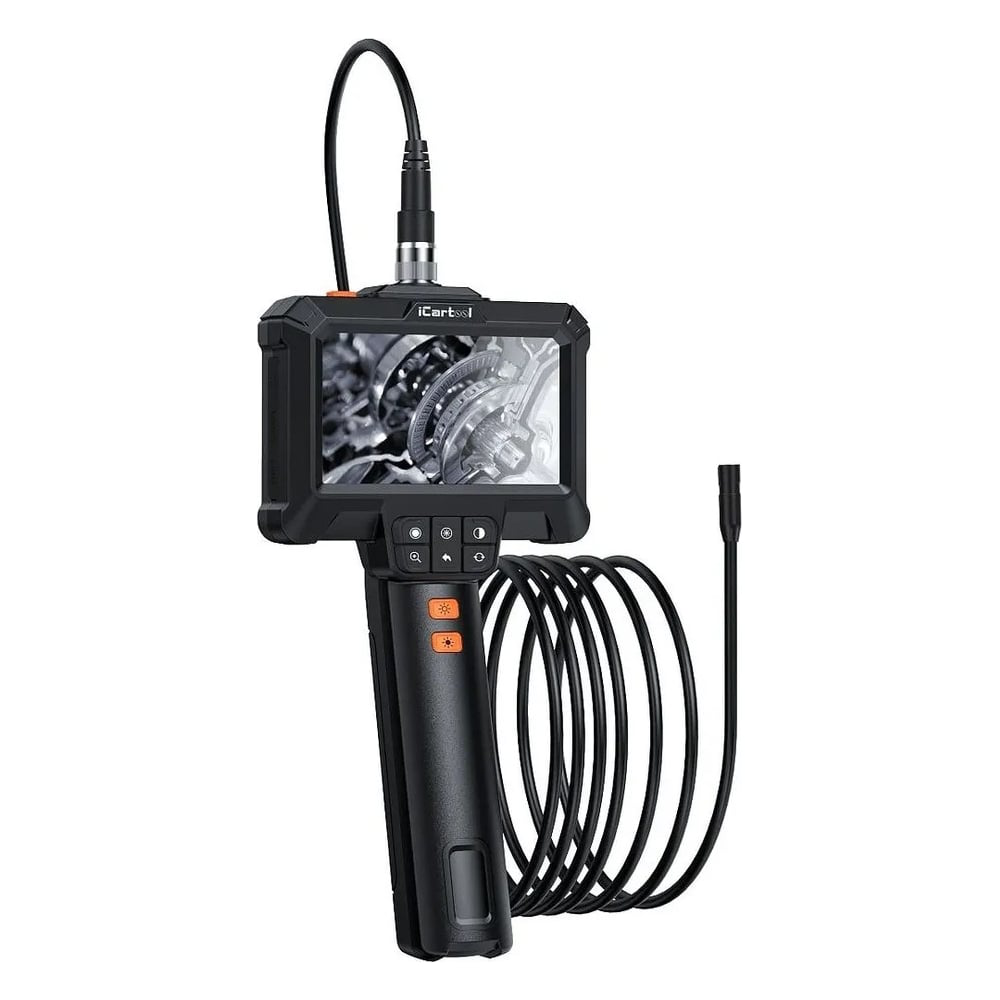 Портативный промышленный эндоскоп iCartool IC-VC83 - оснащен IPS-экраном 4,3 с широким углом обзора и камерой 2 Мп. Камера имеет диаметр 8,5 мм и длину всего 3,3 см, благодаря чему достигается максимальная маневренность при прохождении узких изогнутых участков. Зонд эндоскопа полужесткий, хорошо держит форму, имеет длину 3 м и защищен от попадания влаги. Для работы в плохо освещенных местах предусмотрена регулируемая LED подсветка с 3 режимами яркости. Встроенный аккумулятор поддерживает работу до 3,5 часов. В комплект входит USB-кабель для зарядки. Наличие вспомогательных насадок в комплекте (крюк, магнит, зеркало) значительно расширяет список выполняемых задач (крюк для работы с электропроводкой, магнит для извлечения металлических предметов из труднодоступных мест, зеркало для изменения угла обзора). Особенности: Цветной IPS дисплей 4,3 Съемный полужесткий зонд диаметром 8.5 мм и длиной 3 м Разрешение камеры 2 Мп (1920х1080) Фокусное расстояние от 2,5 до 7 см Поворот картинки на 180, цифровой зум Регулируемая LED-подсветка с 8 светодиодами и 3 режимами яркости Широкий угол обзора 70 Встроенный Li-ion аккумулятор емкостью 2000 мАч