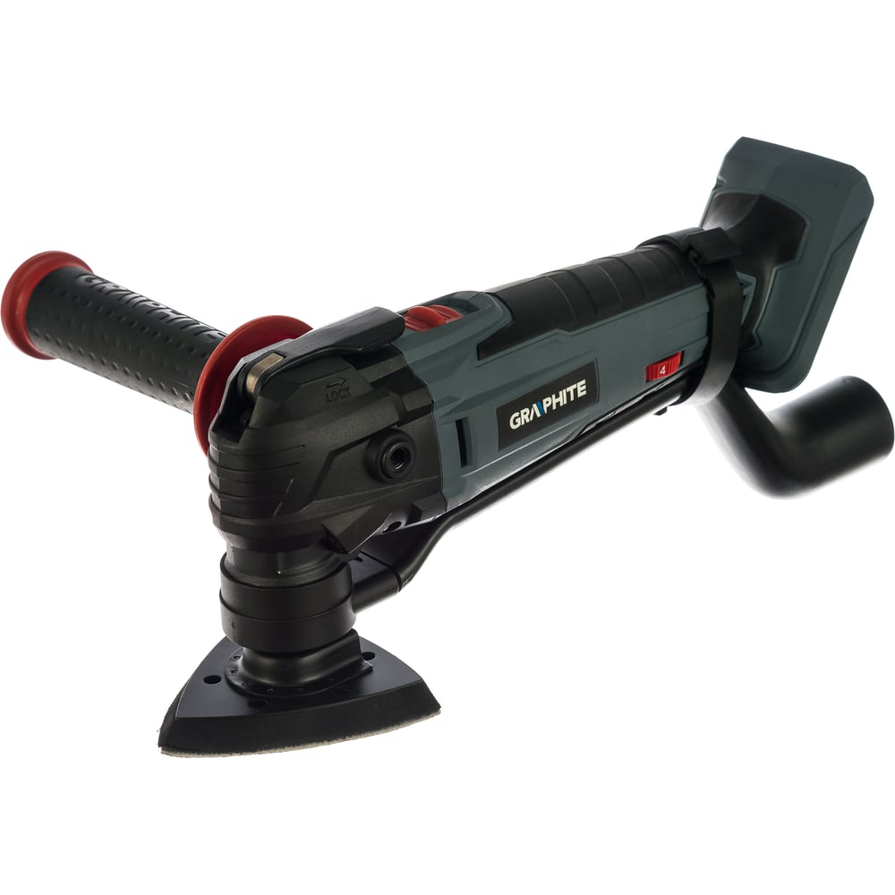 Многофункциональный аккумуляторный инструмент GRAPHITE Energy+ 58G013 используется для распила, шлифовки или обдирки металла, дерева или керамики. Дополнительная рукоятка снижает помогает надежно удерживать прибор в руках. Прорезиненные вставки обеспечивают надежный хват без выскальзывания инструмента. Инструмент оснащен системой быстрой и безынструментальной замены рабочих принадлежностей, что экономит время пользователя.