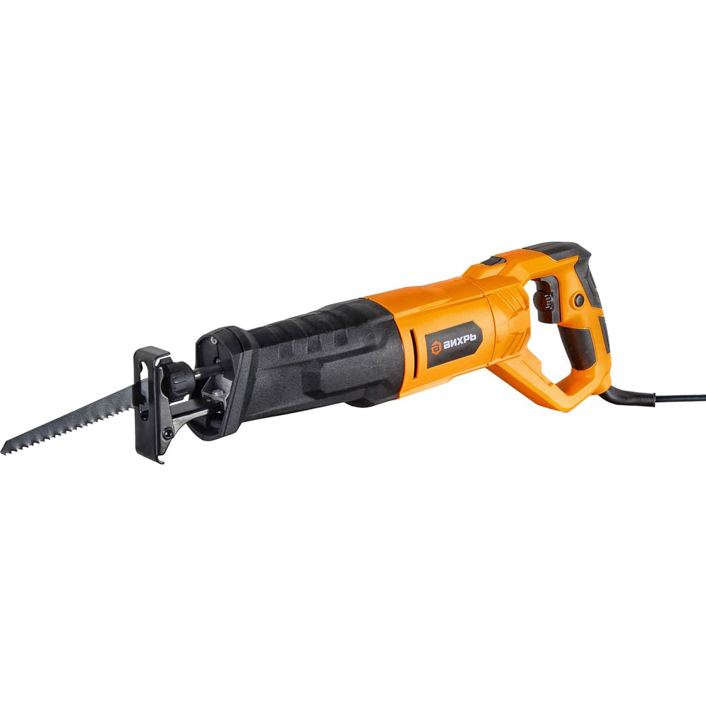 Сабельная пила Вихрь ПС-900Э мощностью 900 Вт с электронной регулировкой частоты хода и подсветкой зоны пиления станет полезной альтернативой ручной ножовке, быстро справится с пилением и разрезанием самых разных материалов.Пила работает по принципу ручной ножовки, но наличие электропривода позволяет обойтись без особых физических усилий. Включение производится посредством нажатия кнопки, которую можно зафиксировать, чтобы не держать всё время. В комплектацию инструмента входит пилка по дереву, которая обеспечит глубину распила 150 мм. Наличие быстросъемного универсального патрона позволяет быстро произвести замену. При установке соответствующей пилки можно производить распил металла на глубину 15 мм. Благодаря электронной регулировке частоты можно настраивать скорость пиления под разные материалы.Сабельная пила весом 2,6 кг оснащена надежным корпусом с эргономичной ручкой. Регулировка упора производится посредством рычага, без необходимости использовать дополнительный инструмент. Модель имеет функцию поворота корпуса на 90 градусов, что упрощает процесс пиления в разных положениях, труднодоступных местах, а также подсветку для работы при плохом освещении. Длина кабеля составляет 2 м, что позволяет использовать инструмент в относительной удаленности от розетки.Удобная, мощная, универсальная модель Вихрь ПС-900Э пригодится на даче, в мастерской, на рабочих объектах, где требуется инструмент для разрезания или пиления дерева, металла.