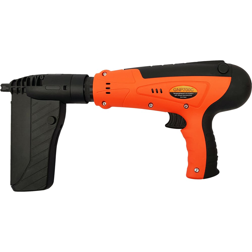 Пороховой монтажный пистолет GNP700C имеет широкую область применения, прост в эксплуатации и обслуживании, безопасен и не требует специальных навыков. Применяется для монтажа на различных типах поверхностях, таких как: бетон, металл, стеновые блоки, кирпич. Является эффективным инструментом при фиксации опалубки, штукатурной сетки, профлиста и гидроизоляционных материалов. Существенно повышает производительность, позволяя забивать до 700 гвоздей в час. Мощный и эргономичный пороховой монтажный пистолет. Удобная балансировка и низкая сила отдача при выстреле – снижает нагрузку на руки при интенсивной работе.
