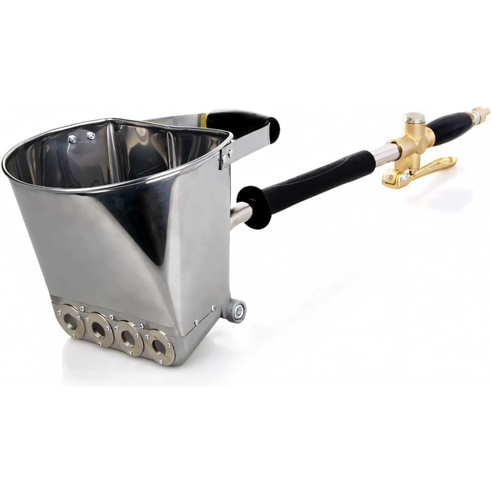 Пневматический хоппер-ковш для нанесения штукатурки AktiSpray AvS-3.5 легко и удобно наносит готовые смеси на стены. Используется для работ с материалами: цементно-песчаными смесями (ЦПС), гипсовыми смесями, глиняными смесями, стеклофибро-бетоном, известковыми смесями и т.д. Имеет простое и понятное управление, не требует особых навыков и умений. Высокая скорость на несения – 30 кг/мин сухой смеси и сила удара обеспечивают качественное нанесение бетона. Один рабочий может оштукатурить до 60 м2 /час слоем толщиной 1 см. За счет выходных сопел в 20 мм, допускается использовать любые добавки и фибры. Захват на 4 пальца.