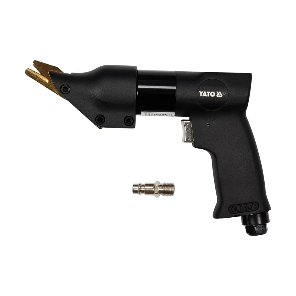 Пневматические ножницы YATO для резки листового металла, для использования в кузовных цехах. Возможность свободной резки стальных листов толщиной до 1,2 мм и толщиной алюминия до 1,4 мм