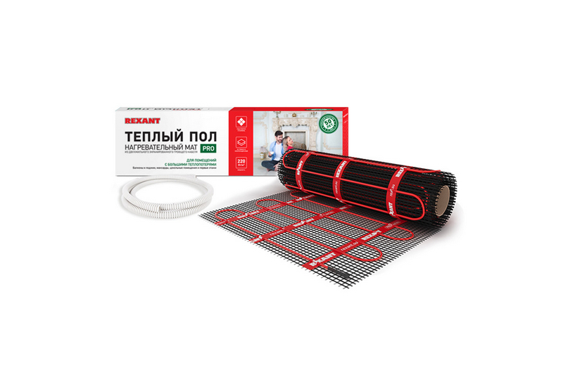 Теплый пол REXANT PRO, 330 Вт, двухжильный с экраном 51-0011 используется для нагрева поверхности пола. Прибор служит в качестве основного или вспомогательного источника тепла в помещениях небольшой площади (1,5 кв.м.). Монтаж мата осуществляется в стяжку или плиточный клей.