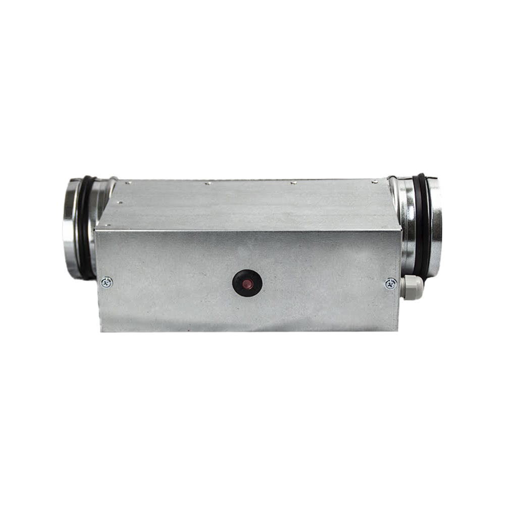 Электрический канальный нагреватель для круглых каналов, корпус и коммутационная коробка изготовлены из оцинкованного стального листа, нагревательные элементы из нержавеющей стали. Нагреватель изготавливается в соответствии ГОСТ 15150-69 климатического исполнения группы УХЛ 4 и должен размещаться в помещениях, защищенных от воздействия атмосферных осадков. Направление воздушного потока должно соответствовать стрелке, расположенной на нагревателе. Скорость воздуха в канале нагревателя должна быть не менее 1,5 м/с, а выходная рабочая температура не должна превышать 40 (С). В случае несоблюдения данных условий возможно срабатывание защиты от перегрева. Нагреватель может быть установлен горизонтально или вертикально. Соединительная коробка может быть расположена сверху и сбоку.
