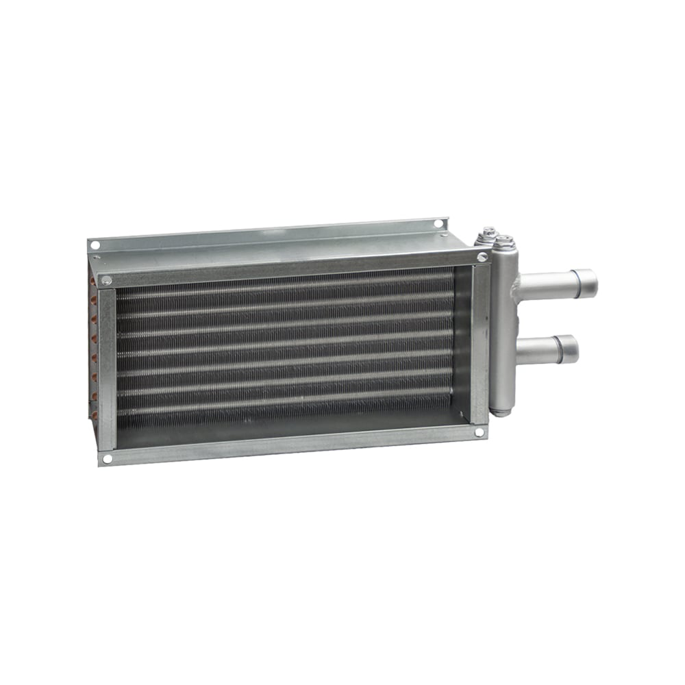 Водяной калорифер оснащен эффективным медно-алюминиевым пластинчатым теплообменником. Теплообменник изготовлен из алюминиевых пластин и проходящих через них медных трубок диаметром 9,52 мм. Шахматное расположение трубок. В приборе воздух нагревается за счет прохождения через нагретый контур пластин или трубок, в которых протекает нагретая до определенной температуры вода. Максимальная температура теплоносителя на входе в теплоноситель 150°С.