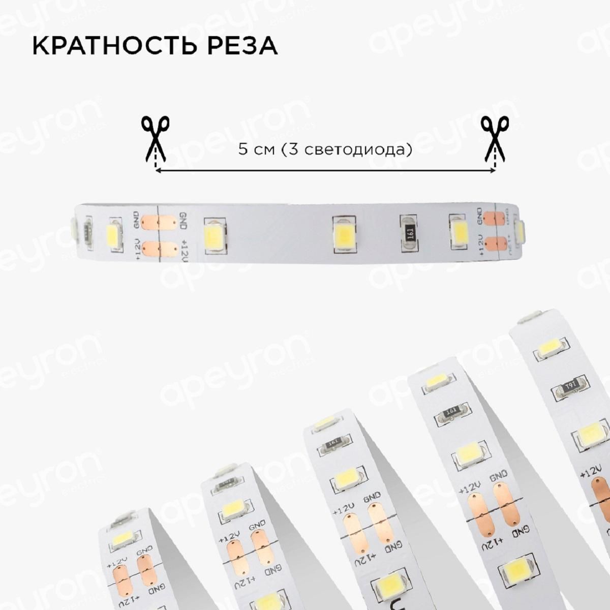 Расширенная гарантия на товар составляет 2 года. поставщик рекомендует использовать лампы накаливания с цоколем LED для освещения площади не указана м2. Светодиодная лента Apeyron 4,8W/m 60LED/m 3528SMD холодный белый 2,5M 10-07 в современном стиле используется в интерьере не указан с установкой На потолок.