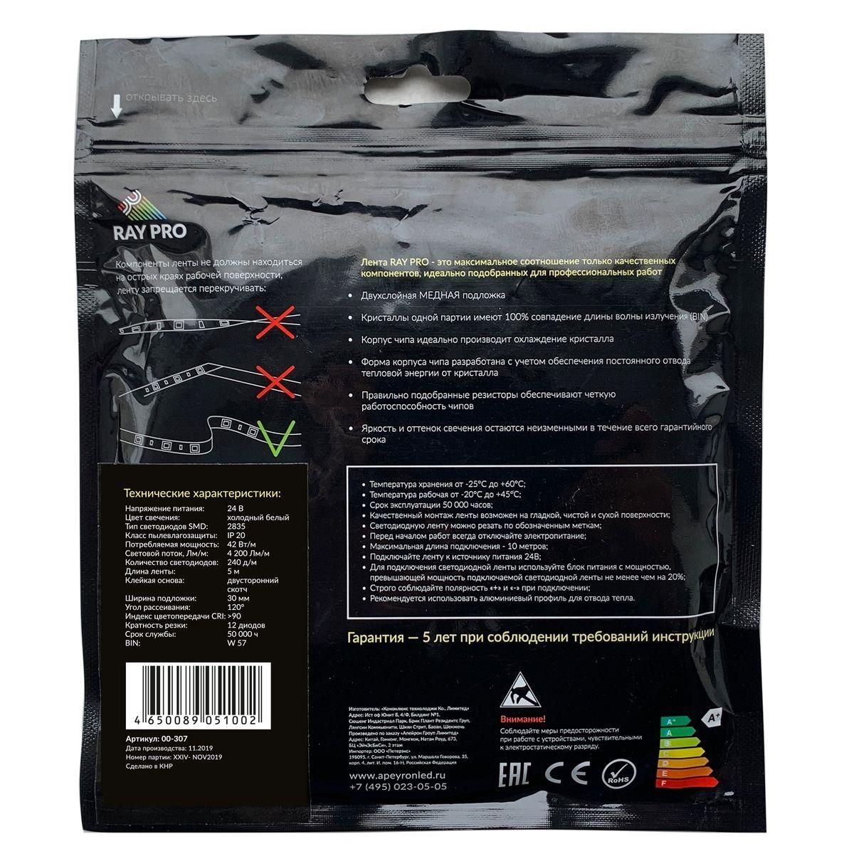 Расширенная гарантия на товар составляет 5 лет. поставщик рекомендует использовать лампы накаливания с цоколем не указан для освещения площади не указана м2. Светодиодная лента Apeyron 41W/m 240LED/m 2835SMD холодный белый 5M 00-307 в современном стиле используется в интерьере не указан с установкой не указано.
