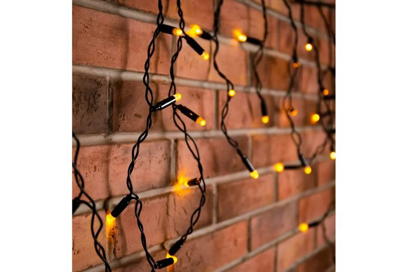 Светодиодная гирлянда бахрома длиной 2,4 метра и шириной 0,6 метра с 88 LED лампочками в тепло-белом цвете - идеальное украшение для любого праздника или мероприятия. Гирлянда имеет защиту от влаги по стандарту IP44, что позволяет использовать ее как внутри помещения, так и на улице. Черный провод практически незаметен на фоне темного декора. Гирлянда работает в режиме постоянного свечения, создавая уютную атмосферу и привлекая внимание своим ярким светом.