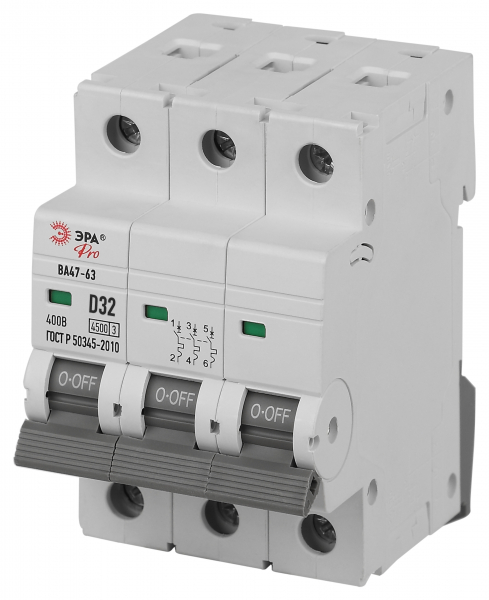 В нашем магазине «Главэлектрика» в Тюмени, вы можете приобрести товар: «Автоматический выключатель ЭРА PRO VA63-3P32D4.5 ВА47-63 3P 32А кривая D 4,5кА (кратно 1)» с доставкой по г. Тюмень.