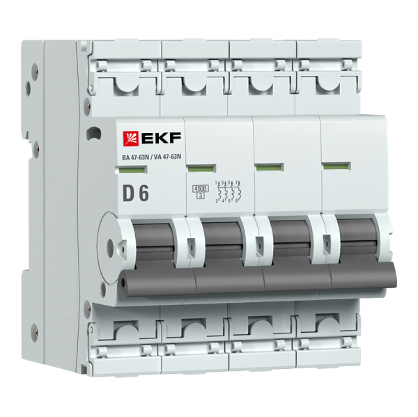 В нашем магазине «Главэлектрика» в Тюмени, вы можете приобрести товар: «Автоматический выключатель ВА 47-63N 4P 6А (D) 4,5 кА PROXIMA EKF» с доставкой по г. Тюмень.