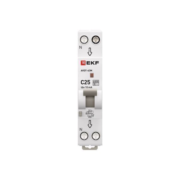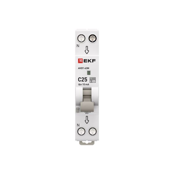 В нашем магазине «Главэлектрика» в Тюмени, вы можете приобрести товар: «Автоматический выключатель дифференциального тока АВДТ-63М 1P+N 18мм 25А характеристика С 10мА тип AС электронный 6кА PROXIMA EKF» с доставкой по г. Тюмень.