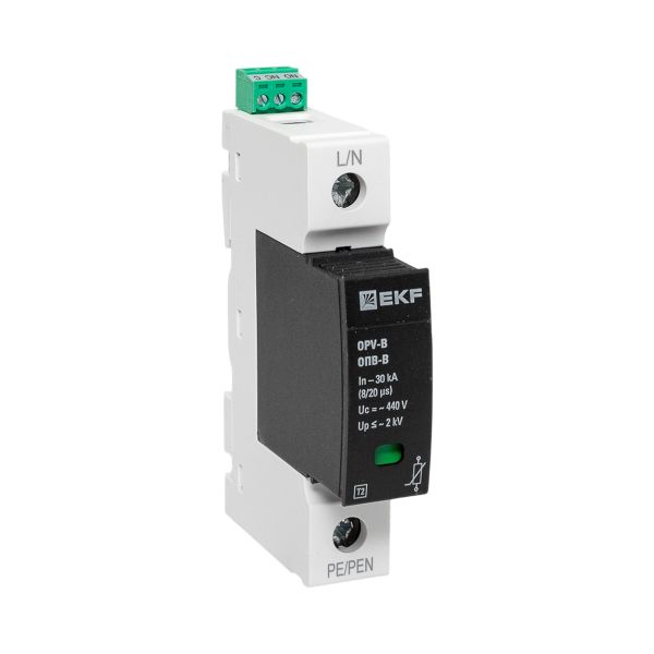 УЗИПы серии ОПВ относятся к классу II и применяются для защиты токораспределительной сети объекта от коммутационных помех или как вторая ступень защиты при ударе молнии. Тип "B" характеризуется номинальным разрядным током 30кА, максимальным разрядным током 60кА с формой волны 8/20 мкс.