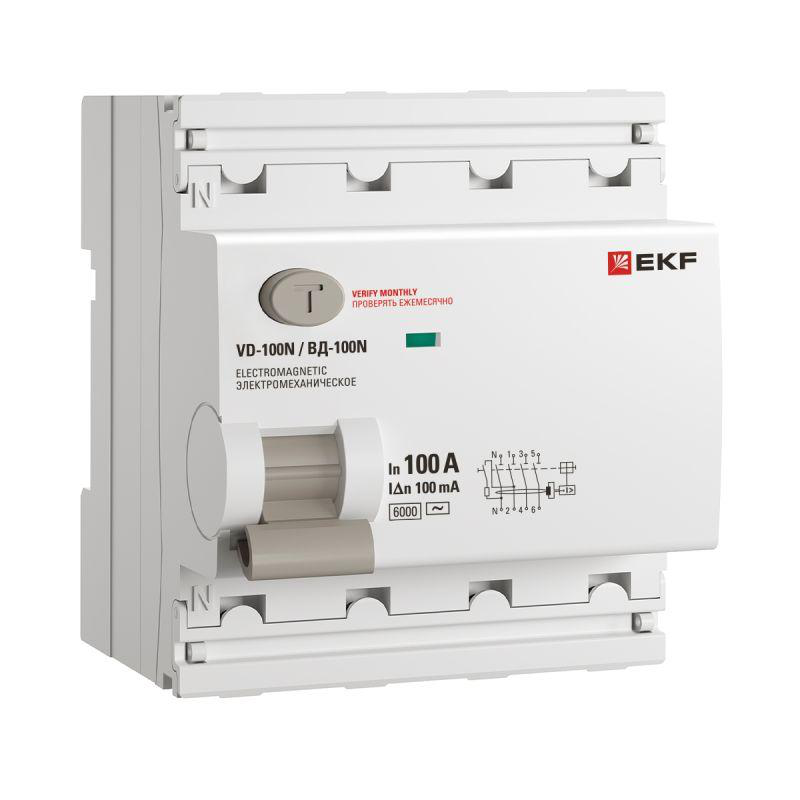 Выключатель дифференциального тока ВДТ ВД‑100N PROXIMA EKF применяется в электрических цепях переменного тока номинальным напряжением 230В/400 В и частотой 50 Гц. Предназначено для защиты людей от поражения электрическим током при случайном прикосновении к открытым проводящим частям электроустановки; защиты электроустановки (ЭУ) при повреждении изоляции проводников и неисправностях ЭУ; предотвращения возгораний и пожаров, возникающих вследствие протекания токов утечки и развивающихся из них коротких замыканий, замыканий на корпус и замыканий на землю. Выключатель дифференциального тока ВДТ ВД‑100N PROXIMA EKF соответствует ГОСТ 31601.2.1 (IEC 61008–2–1), IEC 61008–1.