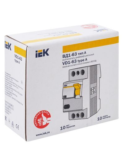 Дифференциальный выключатель ВД 1-63 тип А без встроенной защиты от сверхтоков реагирует не только на синусоидальные переменные дифференциальные токи, но и на пульсирующие постоянные дифференциальные токи. Источником пульсирующего тока являются, например, стиральные машины с регуляторами скорости, регулируемые источники света, телевизоры, видеомагнитофоны, персональные компьютеры и др. Дифференциальный выключатель ВД 1-63 тип А соответствует требованиям ГОСТ 50326 и ГОСТ 50807 как дифференциальный выключатель, "функционально не зависящий от источника питания". Дифференциальный выключатель ВД 1-63 тип А предназначен для защиты человека от поражения электрическим током при случайном непреднамеренном прикосновении к токоведущим частям электроустановок в сетях переменного тока напряжением 230/400 В и частотой 50 Гц. Дифференциальный выключатель ВД 1-63 тип А выпускается в 2-х и 4-х полюсном исполнении на номинальные токи 16А, 25А, 32А, 40А, 50А, 63А и номинальные отключающие дифференциальные токи 10мА, 30мА, 100мА.