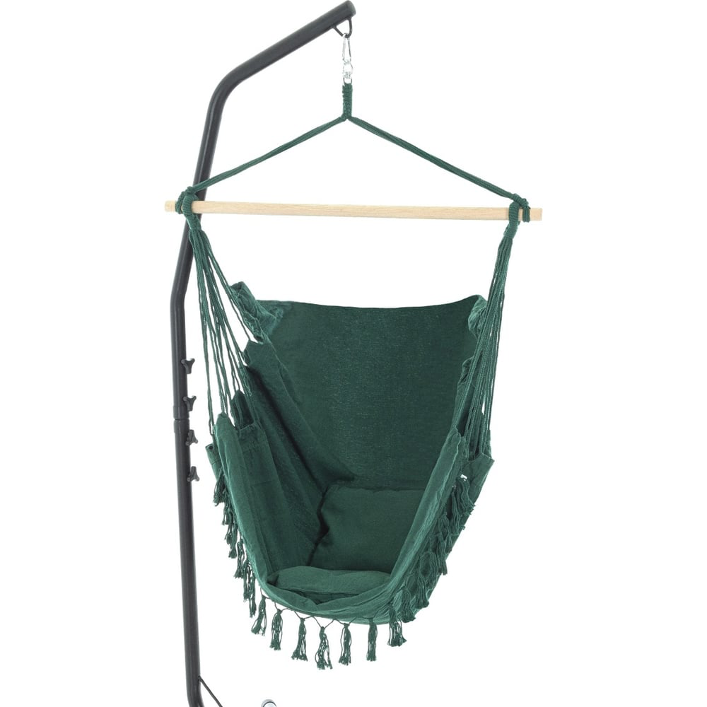 Подвесной гамак Green Glade – это гарантия отличного времяпровождения на свежем воздухе. В тканевом гамаке можно уютно расположиться с любимой книгой в руках, спрятаться от жары в тени деревьев и подремать. Гамак оборудован надежным крючком для крепления, двумя мягкими подушками, боковым карманом, в который можно положить книгу после чтения. Декоративные кисточки по периметру создают настроение игривости.