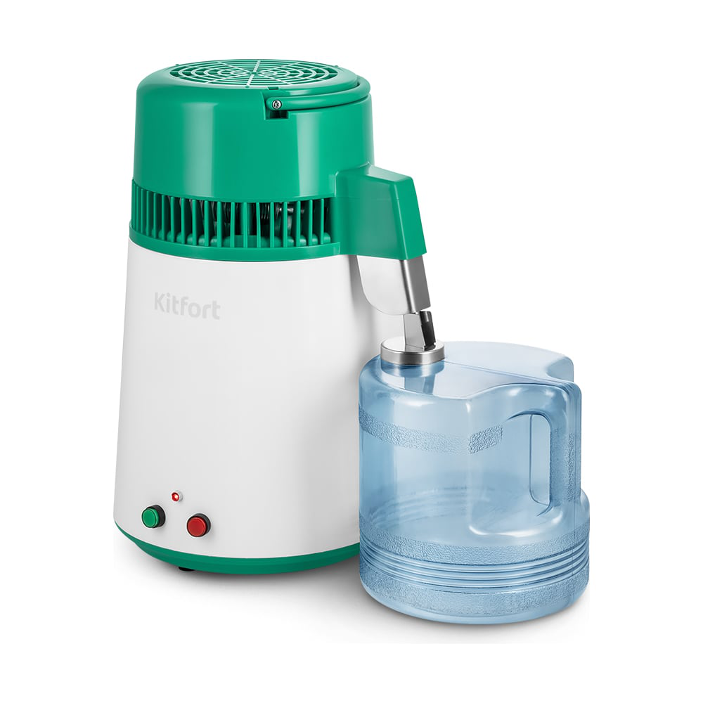 Дистиллятор KT-6334 — это устройство для дистилляции воды в домашних условиях. Прибор очищает воду от хлора, различных бактерий, металлов и других вредных для организма примесей. Дистилляция — это испарение жидкости с последующим охлаждением и конденсацией паров. Проще говоря, вода нагревается в бойлере и испаряется, при этом в бойлере остаются все растворенные в воде соли и минералы. Когда пар попадает в змеевик в крышке, он охлаждается вентилятором и конденсируется, затем полученный конденсат (дистиллированная вода) стекает в канистру. Благодаря дистиллятору KT-6334 вы сможете получить дистиллированную воду дома. Дистиллятор занимает мало места и очень прост в использовании. Благодаря его высокой производительности вы забудете о покупке дистиллированной воды.