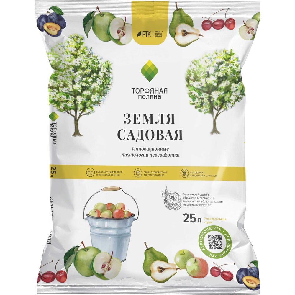 Почвенный грунт Торфяная поляна Садовая земля 25 л 00-00000678 представляет собой полностью готовый питательный торфяной грунт для проращивания семян, пикировки и выращивания рассады и растений овощных (томатов, огурцов, капусты, кабачков, перцев и др.), ягодных и цветочных культур. Грунт состоит из смеси торфов различной степени разложения, известняковой муки, азофоски, песка. Содержит питательные вещества - азот, фосфор и калий.